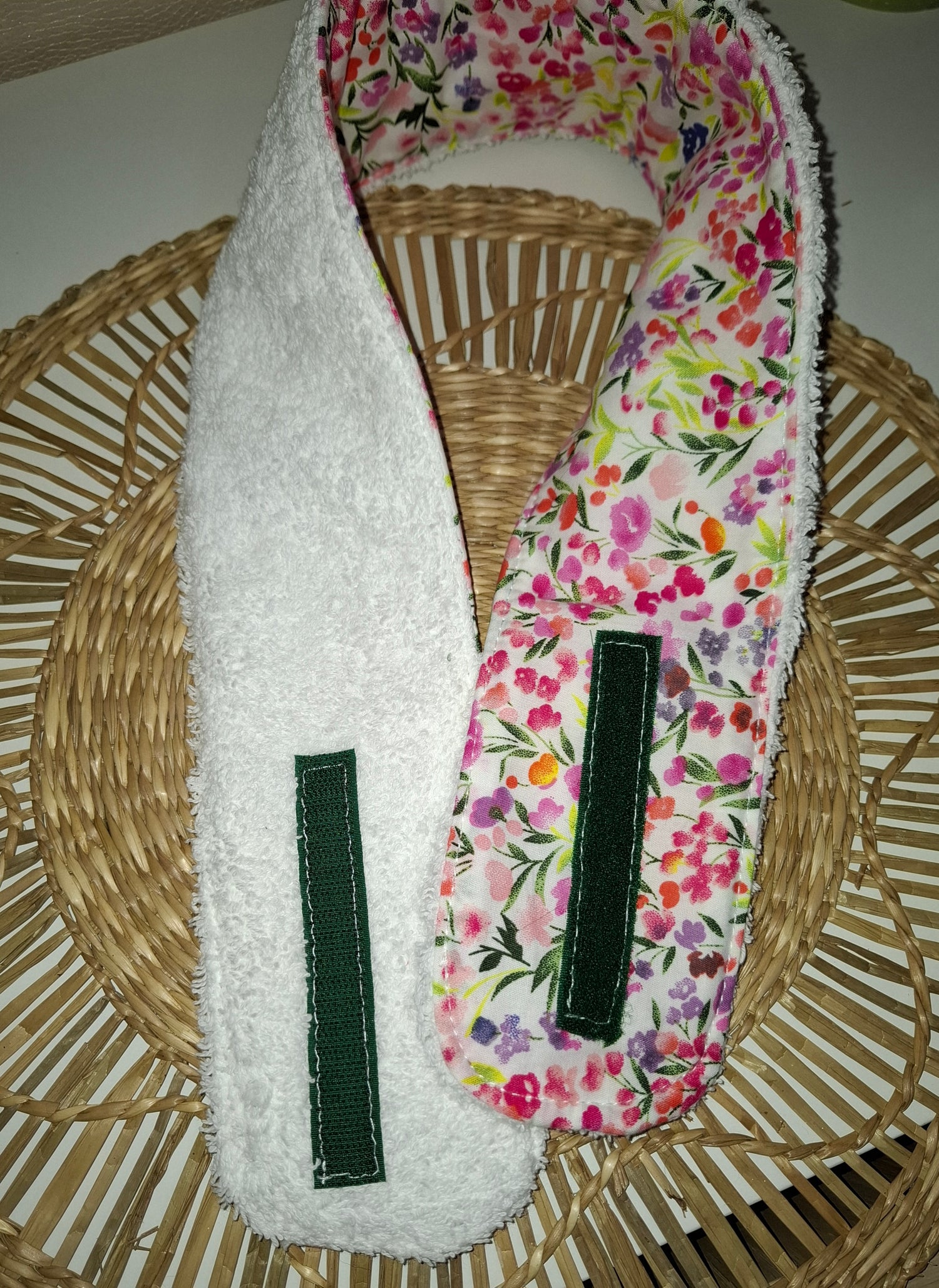 Cousu main avec des matières douces, il facilite l’application de vos soins ou maquillage tout en restant confortable et stylé.