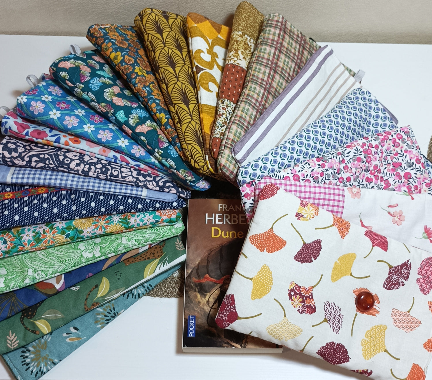 Glissez votre livre dans un étui cousu main pensé pour les lectrices nomades : élégant, doux et pratique pour tous vos trajets.