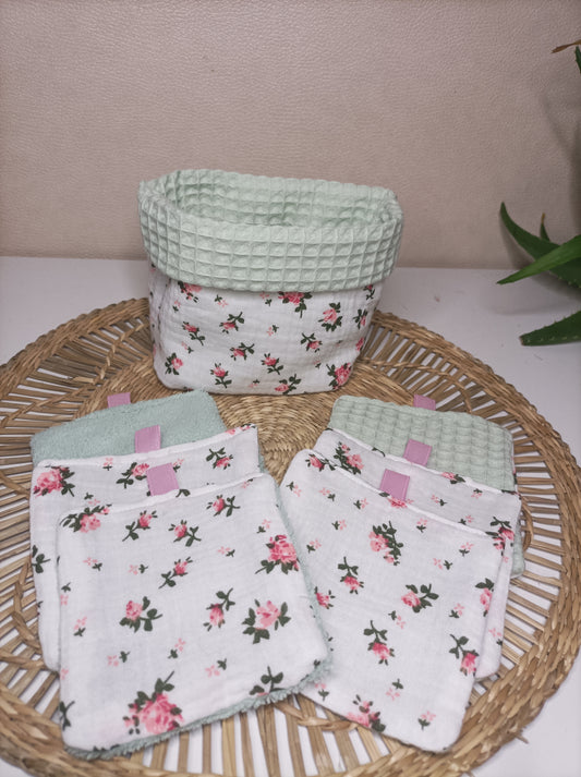 Set de 6 Lingettes Démaquillantes Lavables et Panière "Le Romantique"