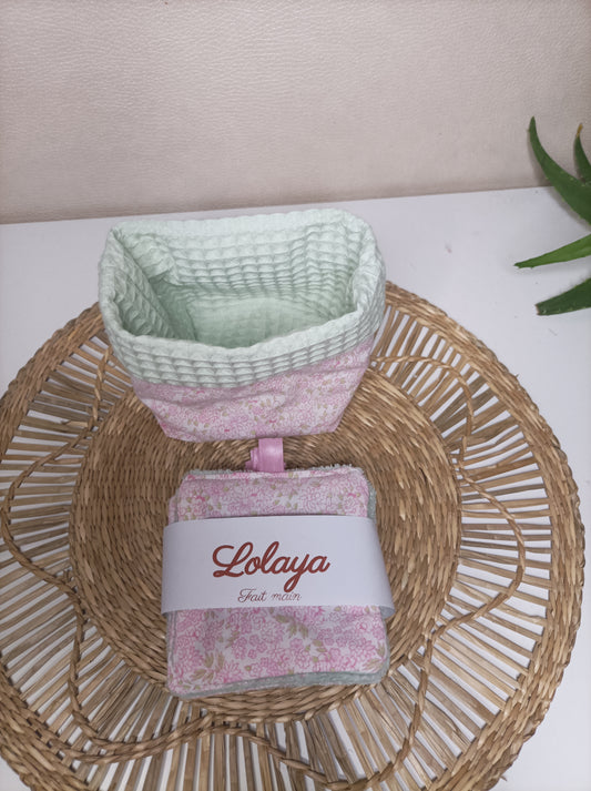 Set de 6 Lingettes Démaquillantes Lavables et Panière "Le Rosé"